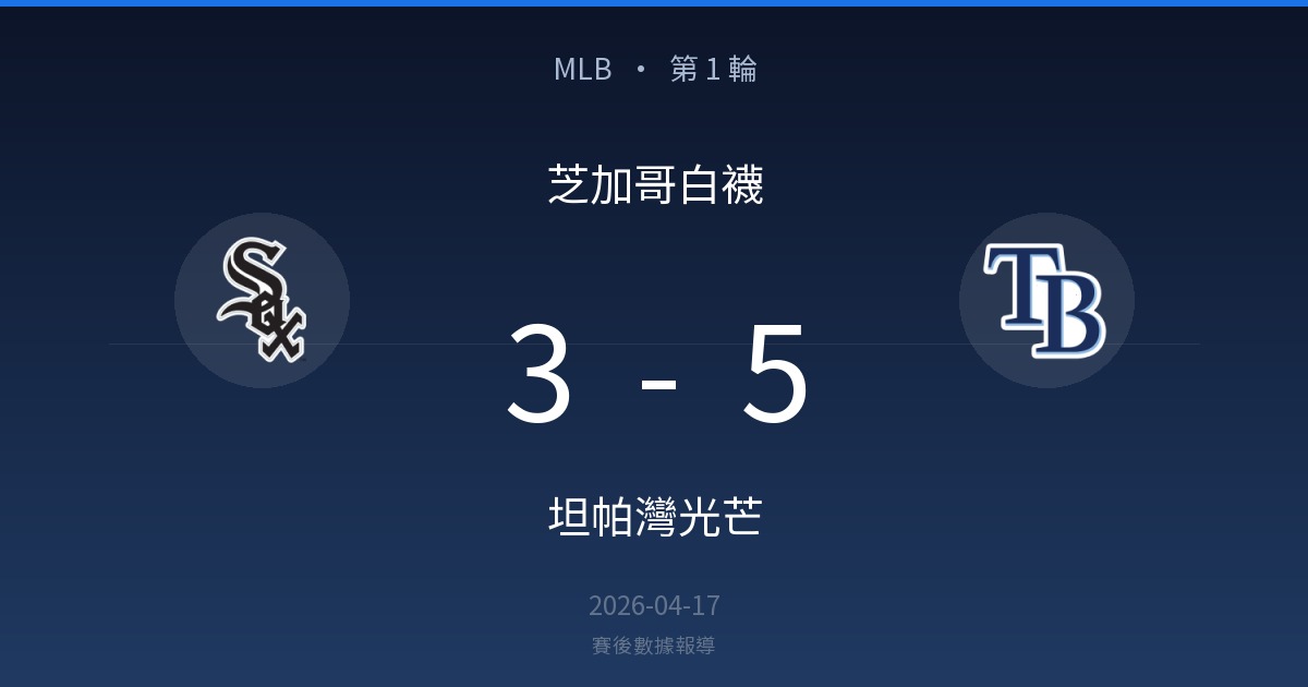 芝加哥白襪 3-5 坦帕灣光芒|MLB 第 1 輪賽後戰報