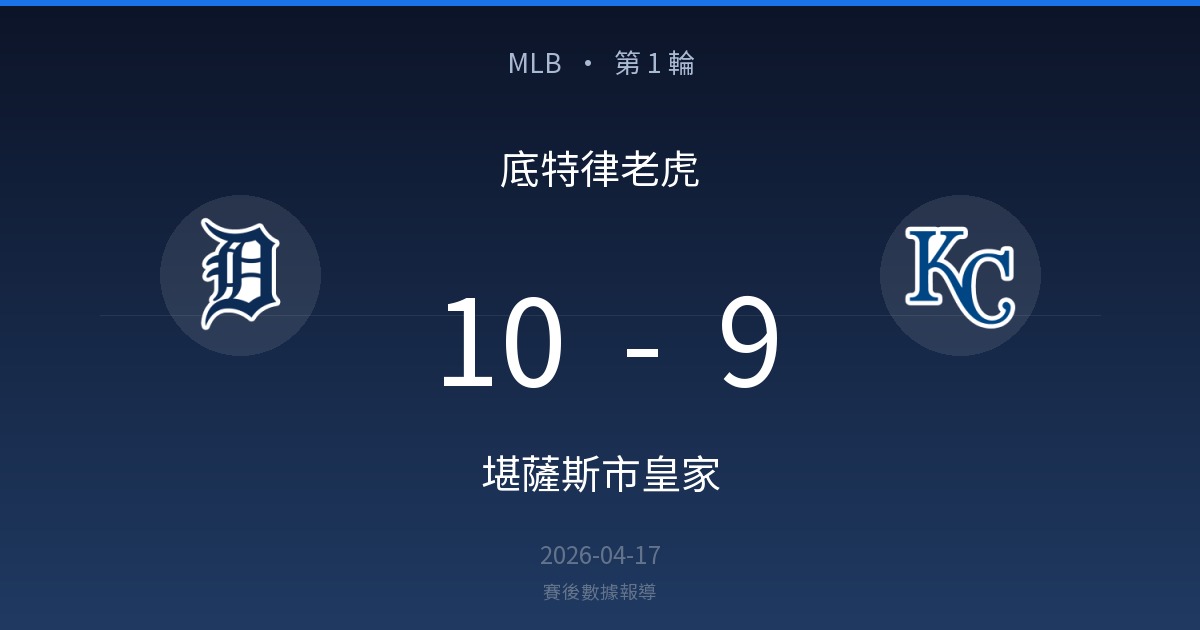 底特律老虎 7 勝 · 0 平 · 3 負 堪薩斯市皇家 (近 10 場)