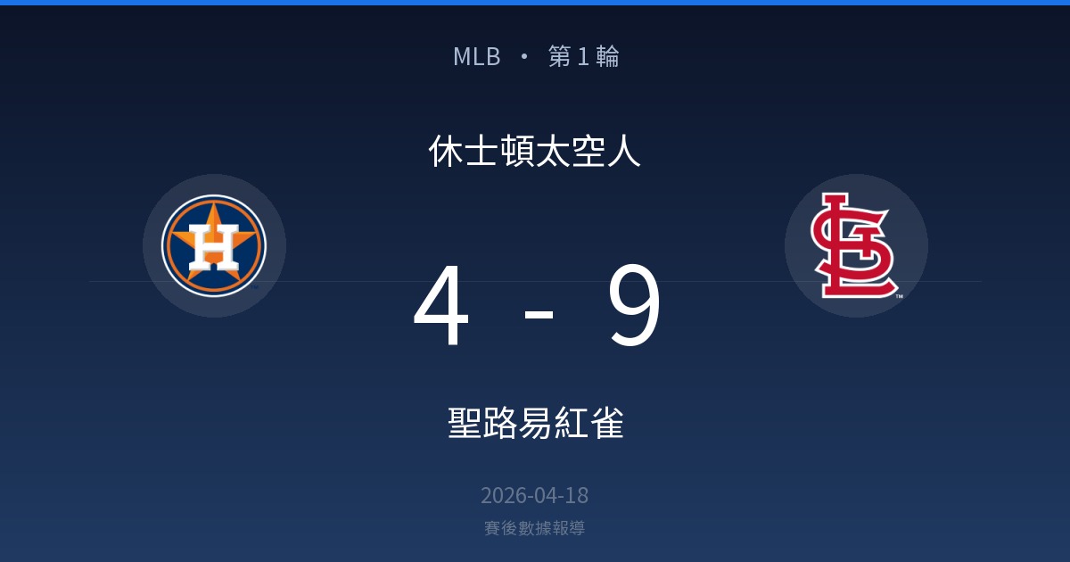 休士頓太空人 4 – 9 聖路易紅雀