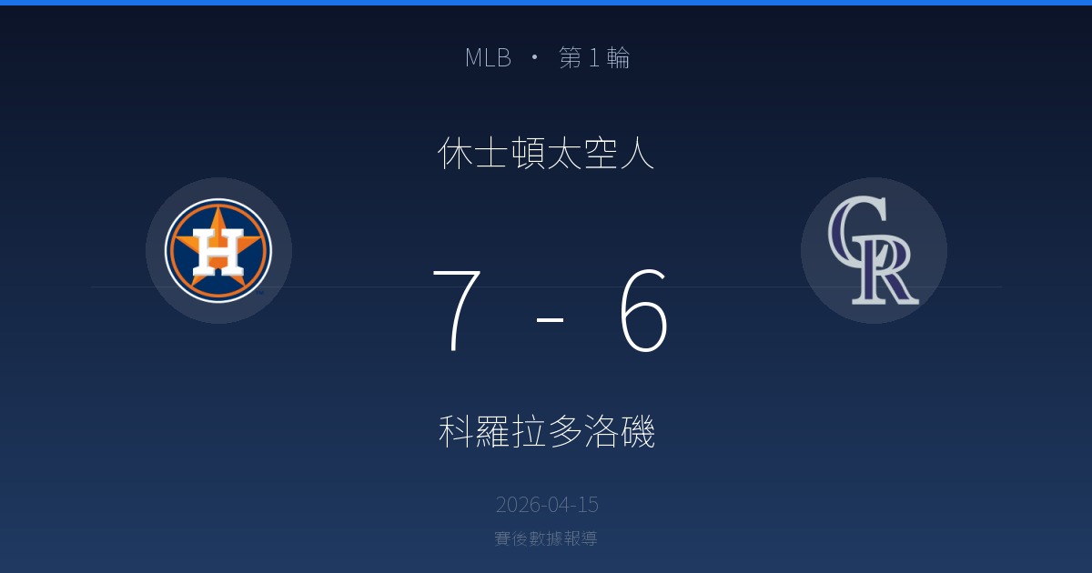 休士頓太空人 7-6 科羅拉多洛磯|MLB 第 1 輪賽後戰報