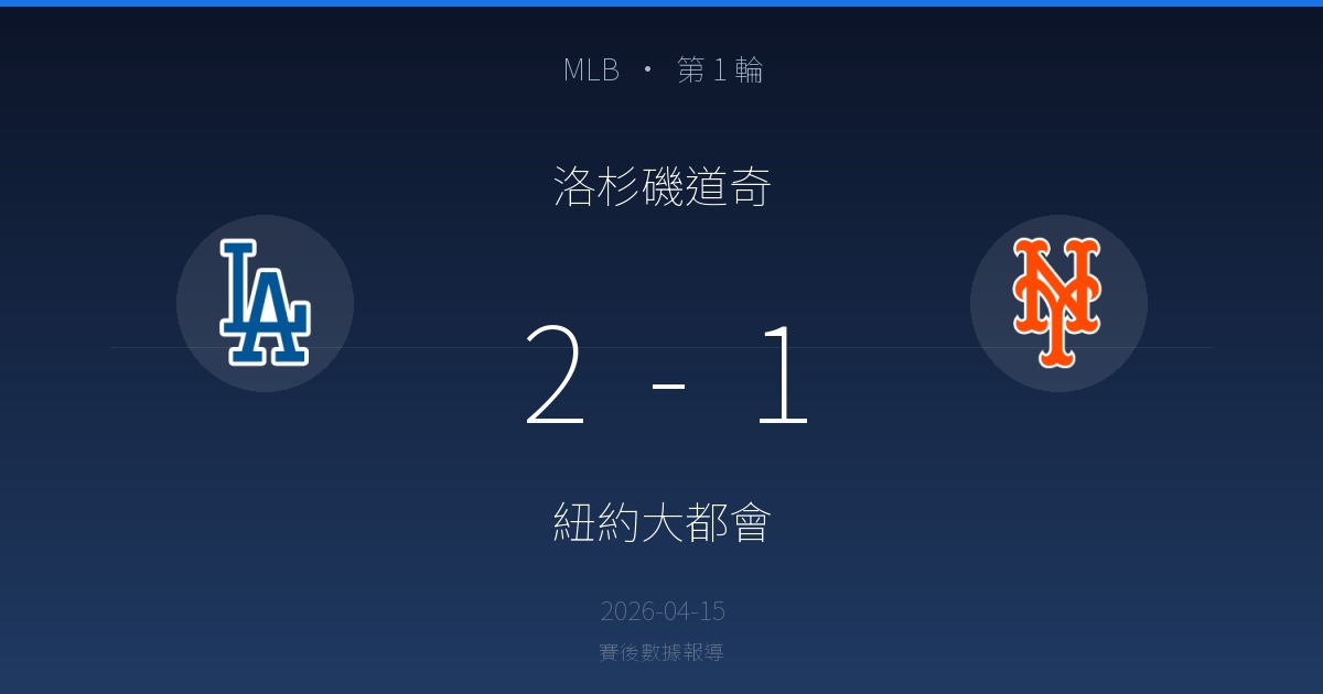 洛杉磯道奇 2-1 紐約大都會|MLB 第 1 輪賽後戰報