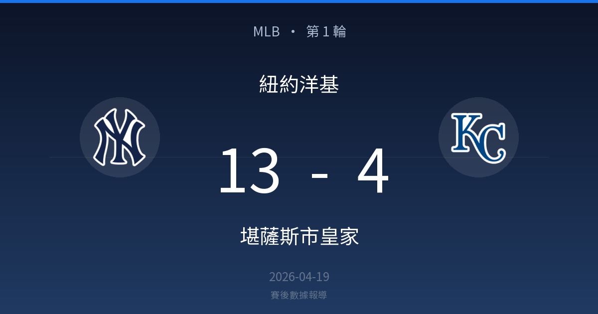 紐約洋基 13-4 堪薩斯市皇家|MLB 第 1 輪賽後戰報