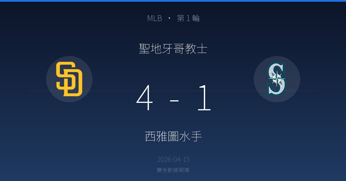 聖地牙哥教士 4-1 西雅圖水手|MLB 第 1 輪賽後戰報