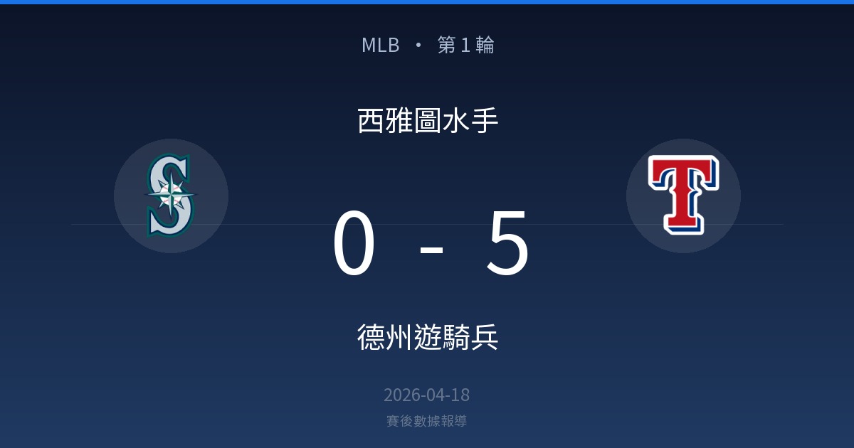 西雅圖水手 4 勝 · 0 平 · 6 負 德州遊騎兵 (近 10 場)