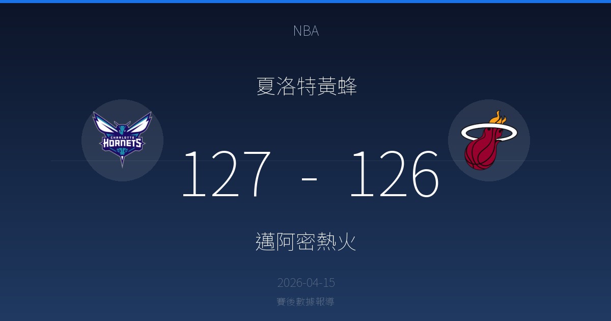夏洛特黃蜂 127 – 126 邁阿密熱火