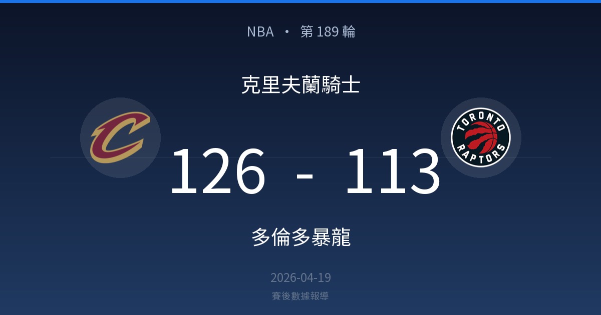 克里夫蘭騎士 126 – 113 多倫多暴龍