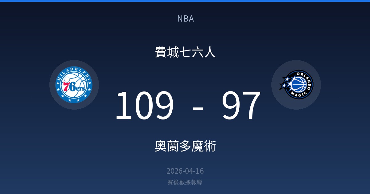 費城七六人 109 – 97 奧蘭多魔術