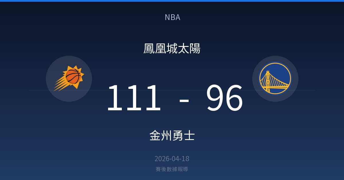鳳凰城太陽 111-96 金州勇士|NBA賽後戰報
