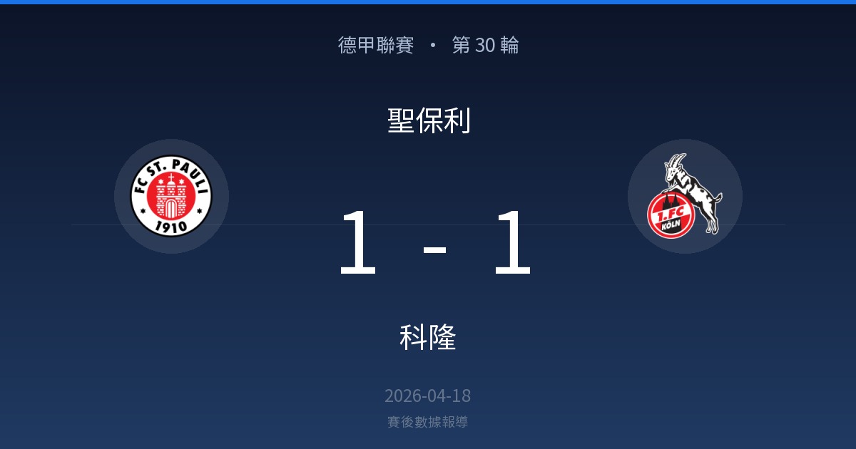 聖保利 1 – 1 科隆