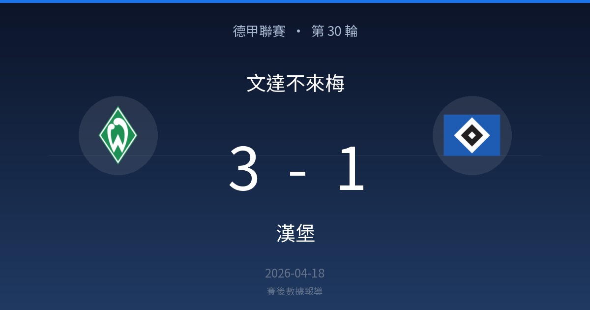 文達不來梅 3 – 1 漢堡