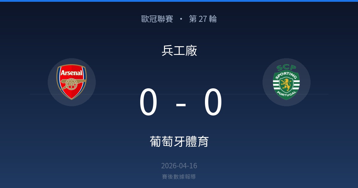 兵工廠 0-0 葡萄牙體育|歐冠聯賽 第 27 輪賽後戰報