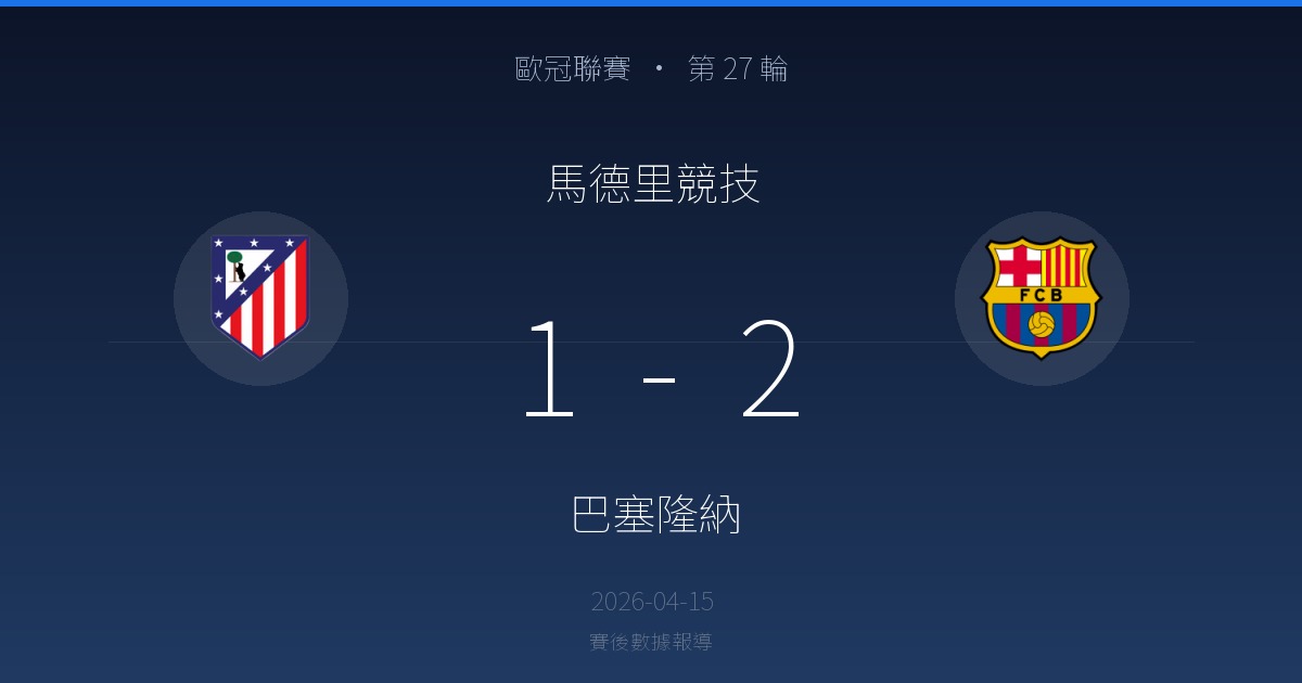 | 22' | 馬德里競技 | Antoine Griezmann | ❌ 射偏 | 左腳 | 0.13 |