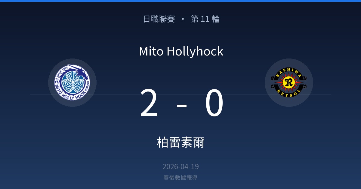 Mito Hollyhock 2 – 0 柏雷素爾