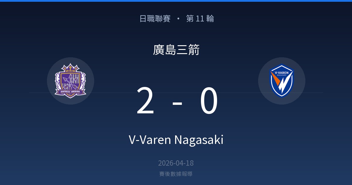 廣島三箭 2 – 0 V-Varen Nagasaki
