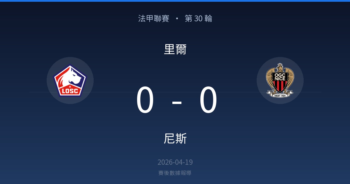 里爾 2 勝 · 4 平 · 4 負 尼斯 (近 10 場)
