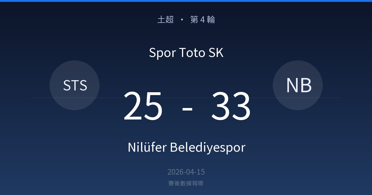 Spor Toto SK 25 – 33 Nilüfer Belediyespor