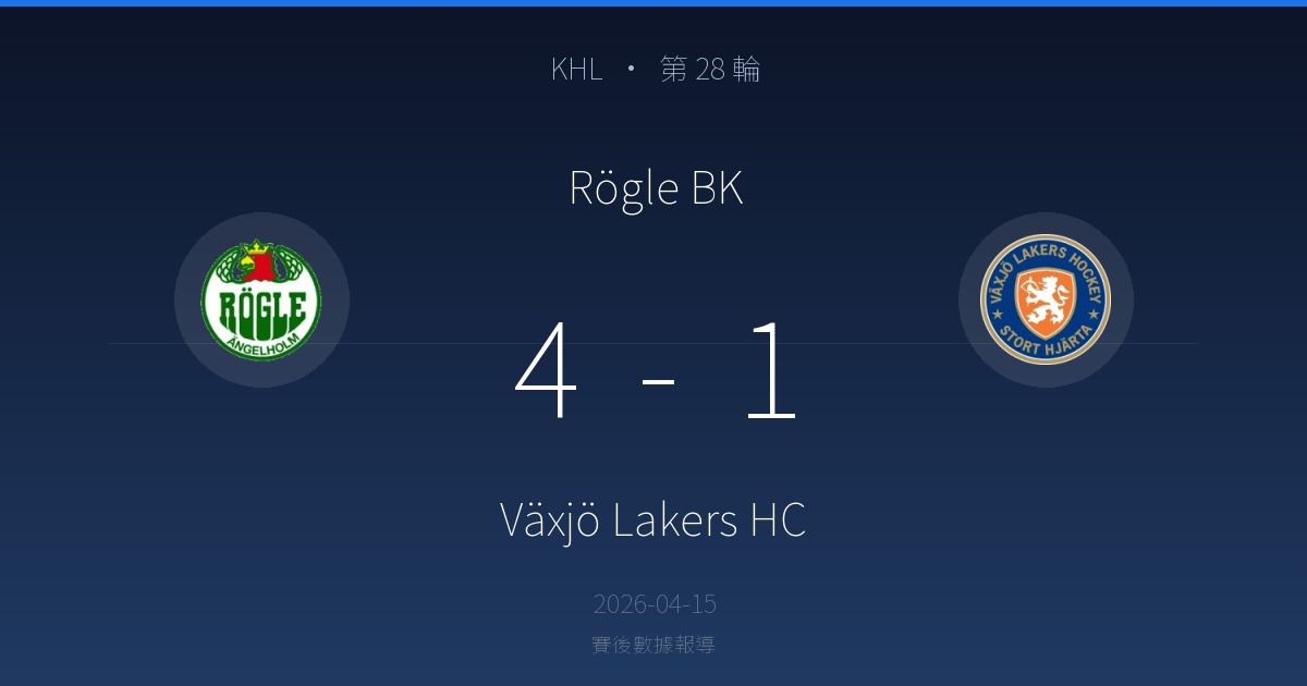 Rögle BK 6 勝 · 0 平 · 4 負 Växjö Lakers HC (近 10 場)