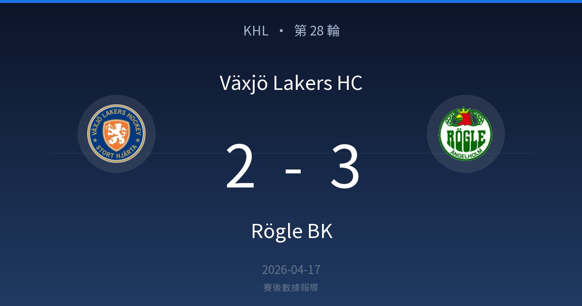 Växjö Lakers HC 4 勝 · 0 平 · 6 負 Rögle BK (近 10 場)