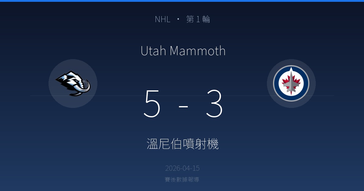 Utah Mammoth 5 勝 · 0 平 · 5 負 溫尼伯噴射機 (近 10 場)