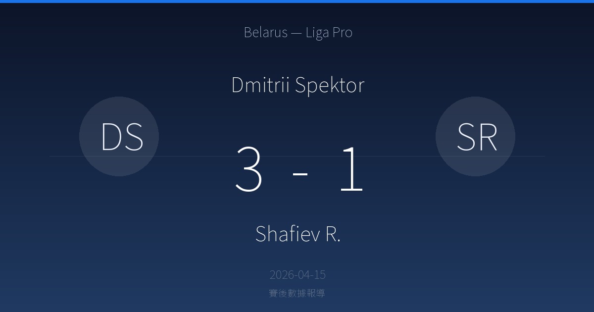 Dmitrii Spektor 1 勝 · 0 平 · 0 負 Shafiev R. (近 1 場)