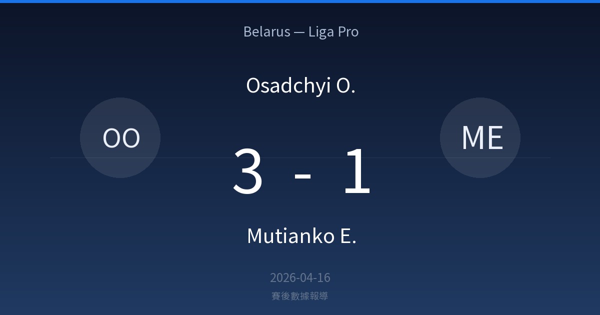 Osadchyi O. 4 勝 · 1 平 · 5 負 Mutianko E. (近 10 場)