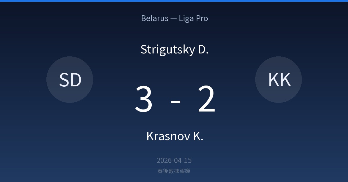 Strigutsky D. 3 勝 · 0 平 · 7 負 Krasnov K. (近 10 場)