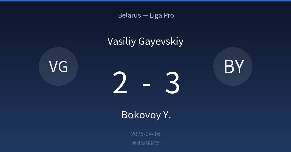 Vasiliy Gayevskiy 0 勝 · 0 平 · 1 負 Bokovoy Y. (近 1 場)