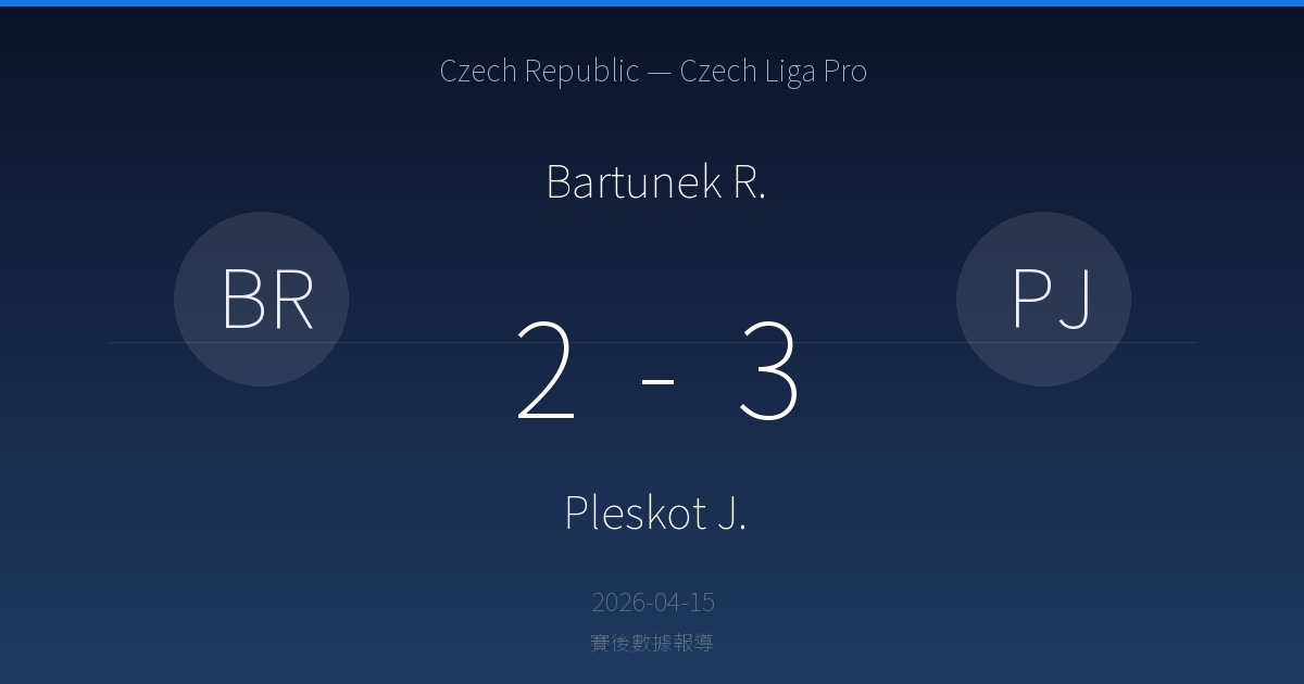 Bartunek R. 2-3 Pleskot J.|Czech Republic — Czech Liga Pro賽後戰報