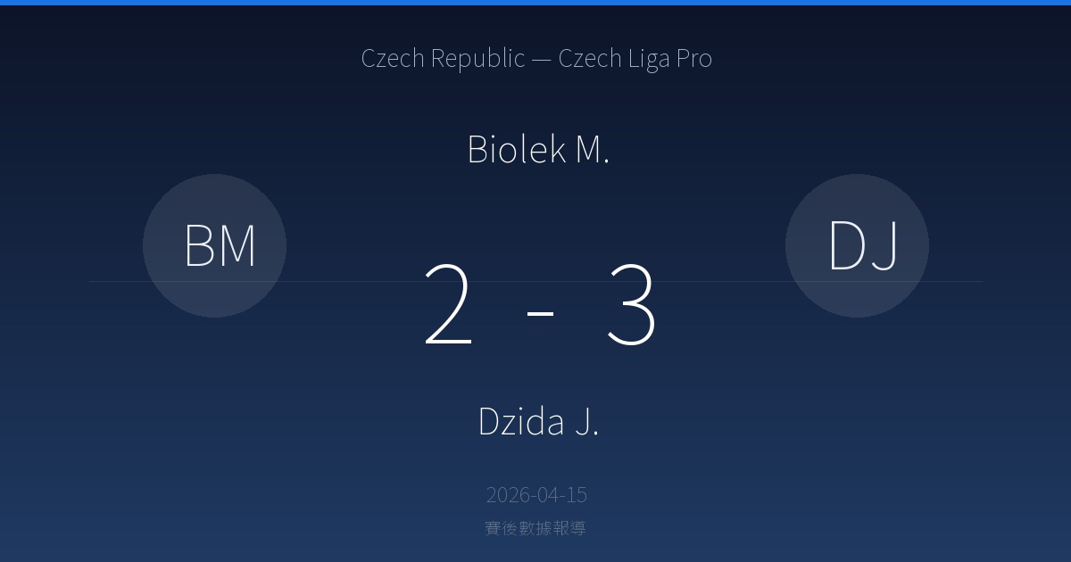 Biolek M. 6 勝 · 0 平 · 4 負 Dzida J. (近 10 場)