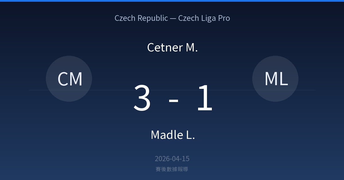 Cetner M. 8 勝 · 0 平 · 2 負 Madle L. (近 10 場)