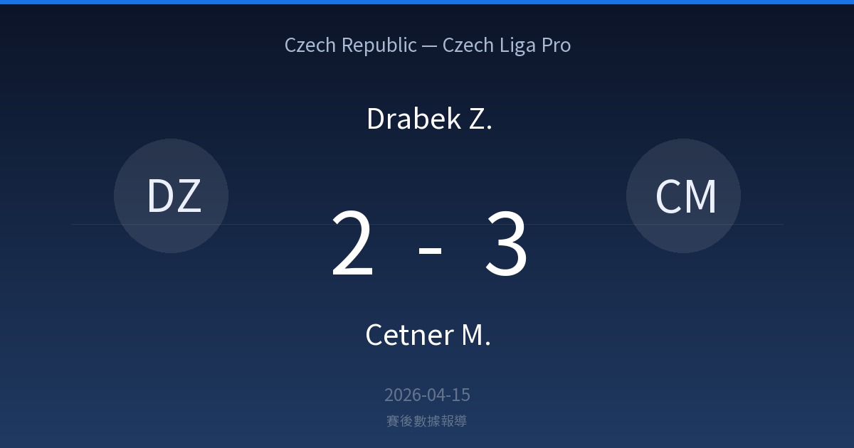 Drabek Z. 2-3 Cetner M.|Czech Republic — Czech Liga Pro賽後戰報