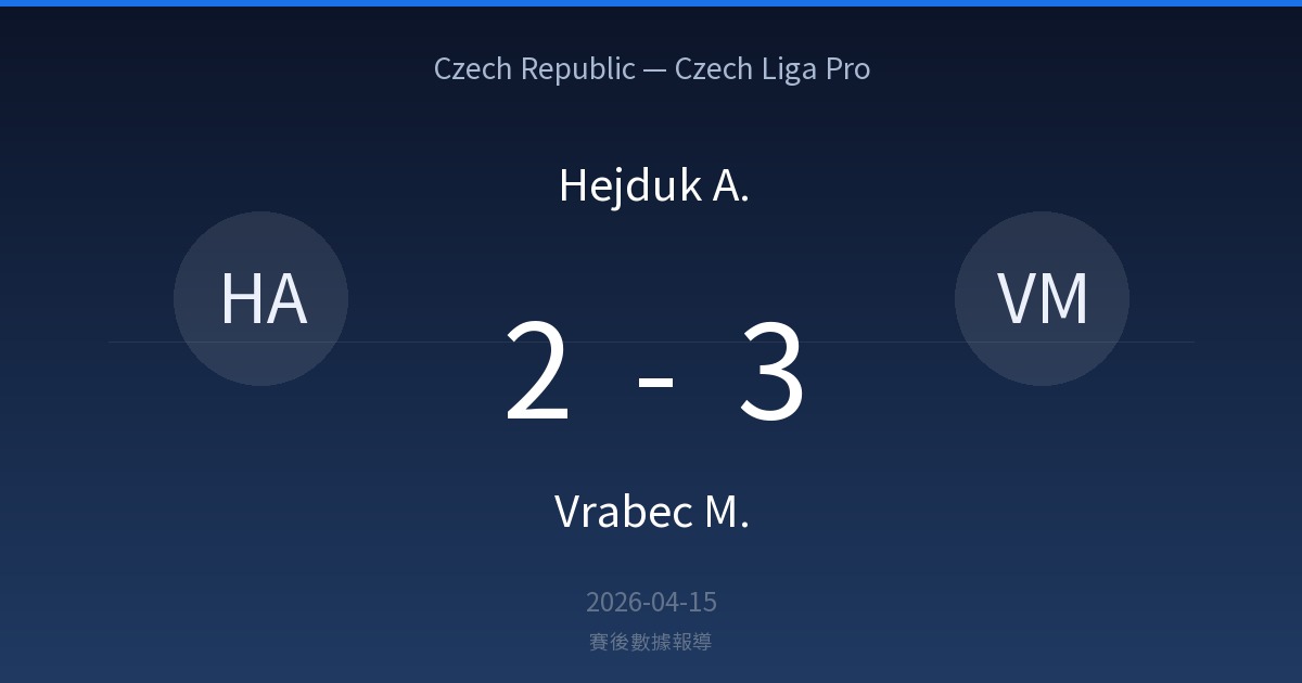 Hejduk A. 2-3 Vrabec M.|Czech Republic — Czech Liga Pro賽後戰報
