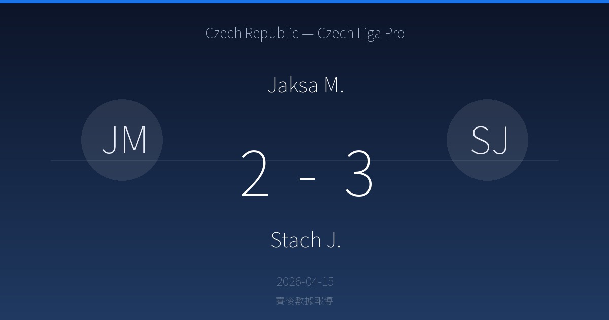 Jaksa M. 4 勝 · 0 平 · 6 負 Stach J. (近 10 場)