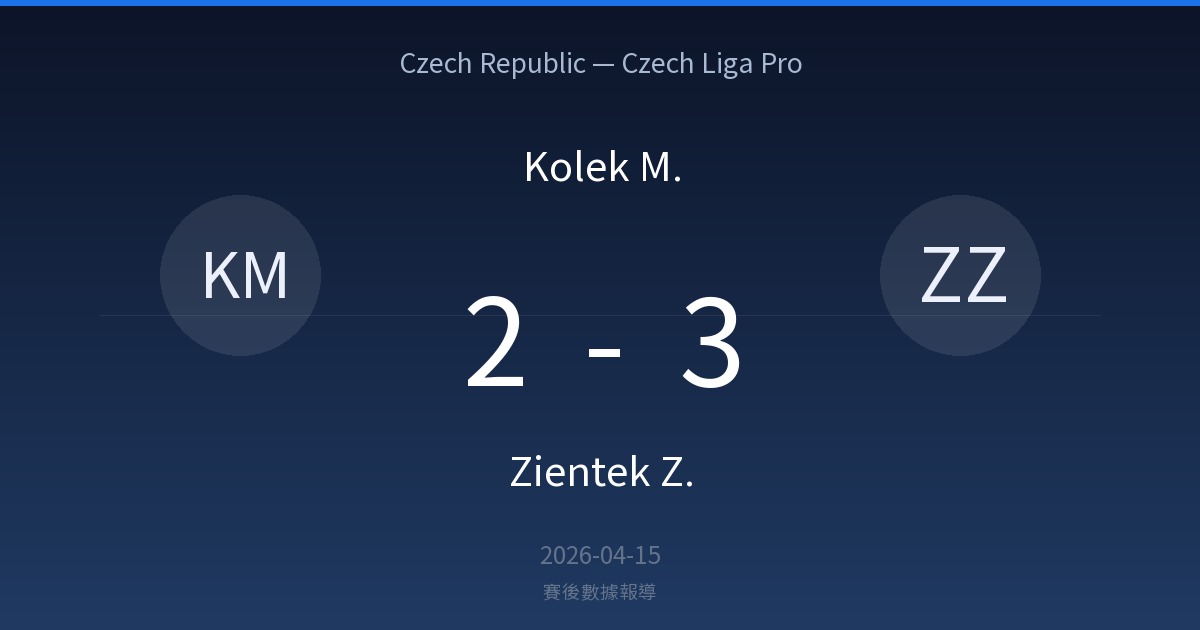 Kolek M. 3 勝 · 0 平 · 7 負 Zientek Z. (近 10 場)