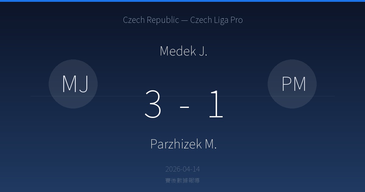 Medek J. 3-1 Parzhizek M.|Czech Republic — Czech Liga Pro賽後戰報