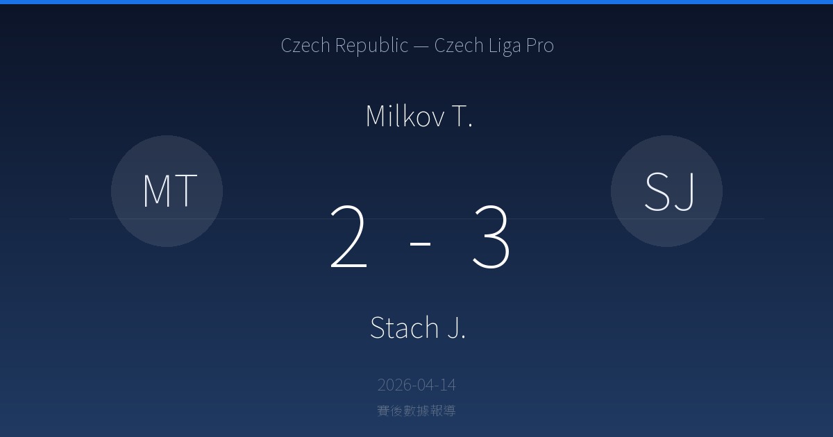 Milkov T. 7 勝 · 0 平 · 2 負 Stach J. (近 9 場)