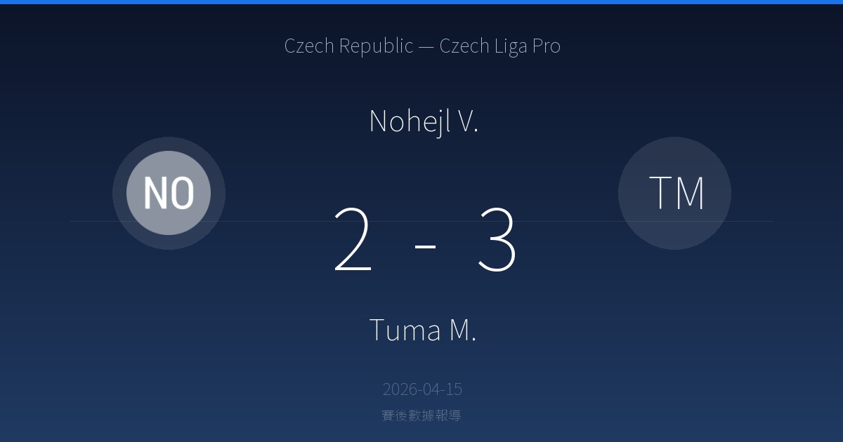 Nohejl V. 2 勝 · 0 平 · 2 負 Tuma M. (近 4 場)