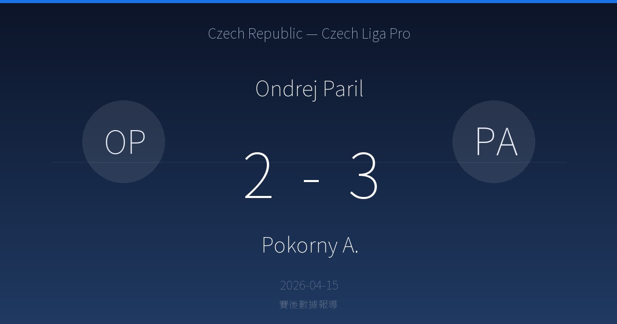 Ondrej Paril 2-3 Pokorny A.|Czech Republic — Czech Liga Pro賽後戰報