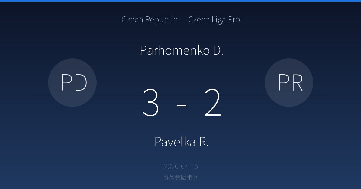 Parhomenko D. 3-2 Pavelka R.|Czech Republic — Czech Liga Pro賽後戰報
