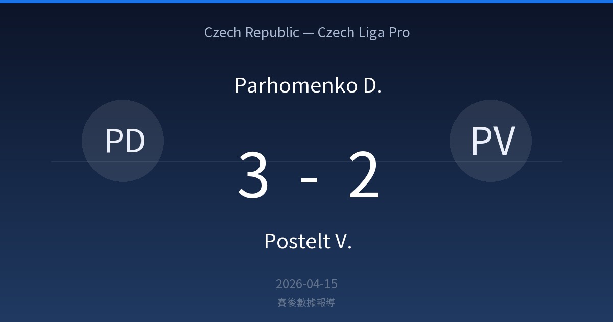 Parhomenko D. 3-2 Postelt V.|Czech Republic — Czech Liga Pro賽後戰報