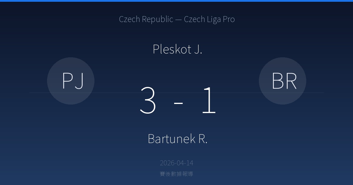 Pleskot J. 5 勝 · 0 平 · 5 負 Bartunek R. (近 10 場)
