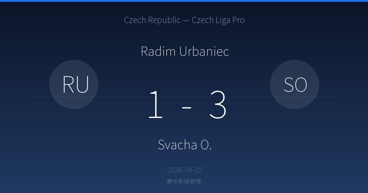 Radim Urbaniec 1-3 Svacha O.|Czech Republic — Czech Liga Pro賽後戰報