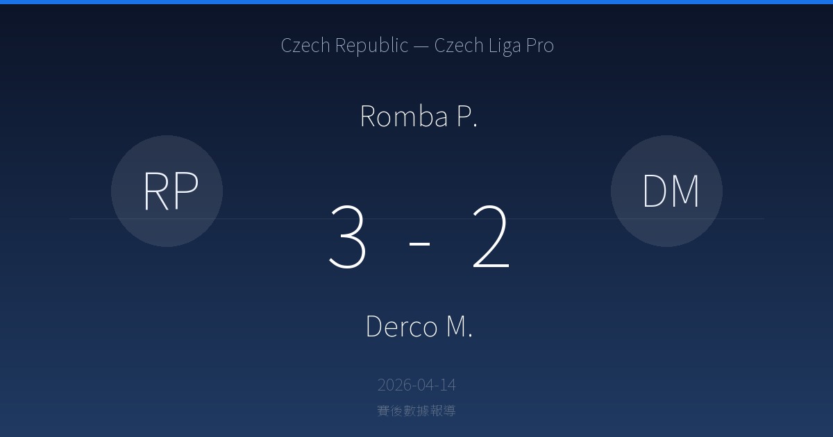 Romba P. 3-2 Derco M.|Czech Republic — Czech Liga Pro賽後戰報