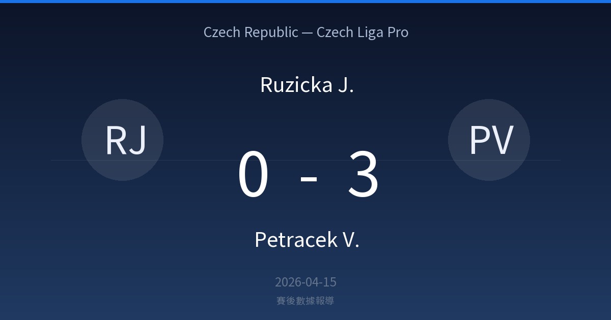 Ruzicka J. 3 勝 · 0 平 · 7 負 Petracek V. (近 10 場)