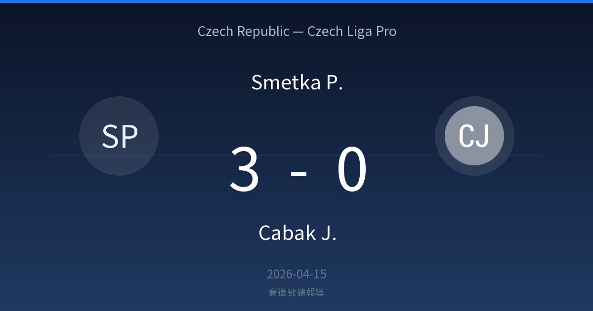 Smetka P. 2 勝 · 0 平 · 0 負 Cabak J. (近 2 場)