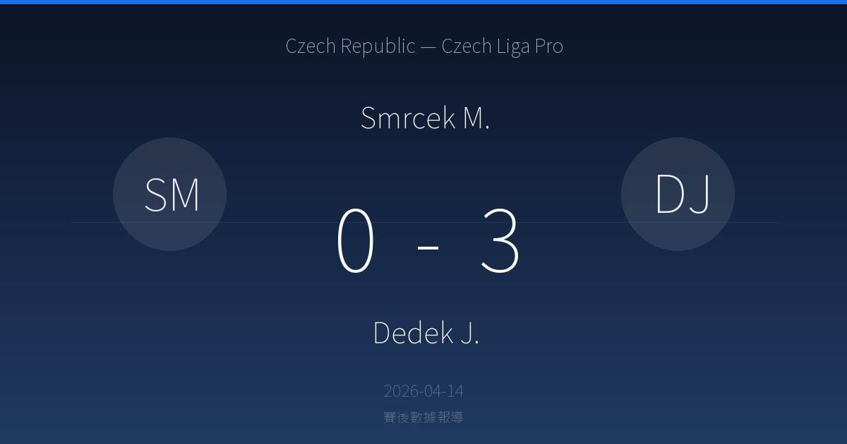Smrcek M. 2 勝 · 0 平 · 8 負 Dedek J. (近 10 場)