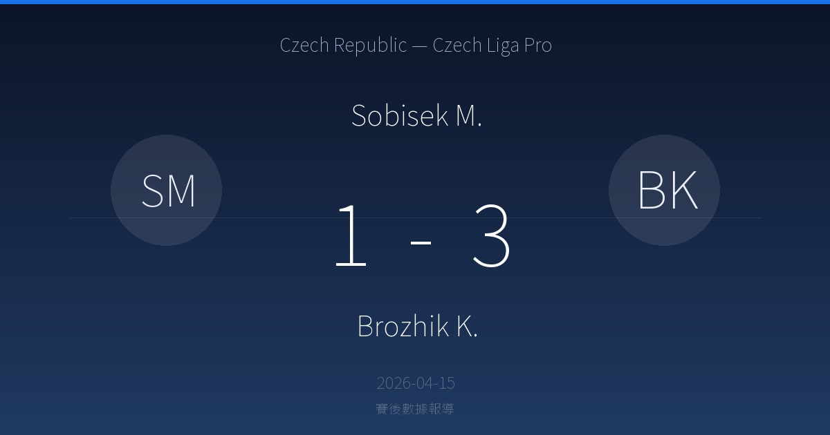 Sobisek M. 5 勝 · 0 平 · 5 負 Brozhik K. (近 10 場)