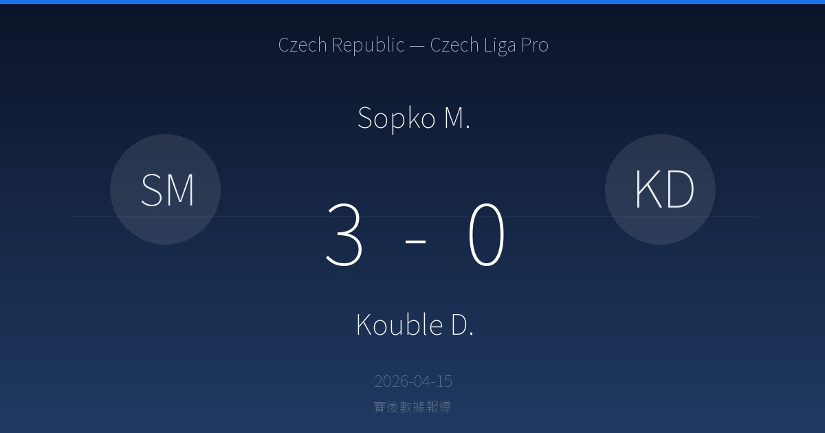 Sopko M. 3-0 Kouble D.|Czech Republic — Czech Liga Pro賽後戰報