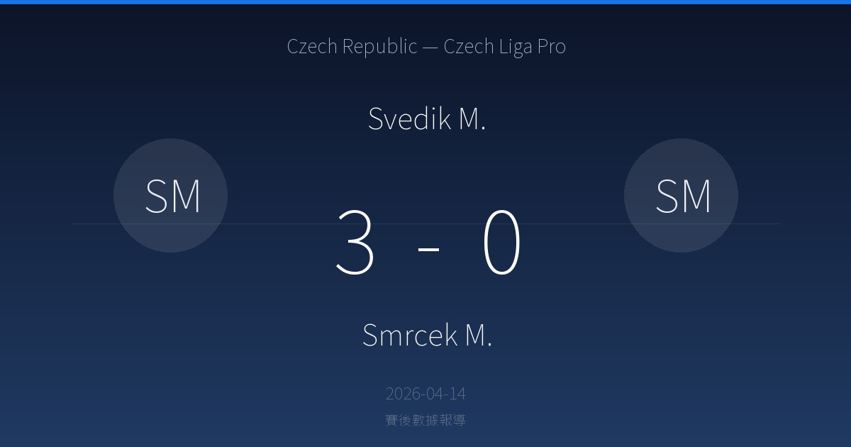 Svedik M. 5 勝 · 0 平 · 0 負 Smrcek M. (近 5 場)