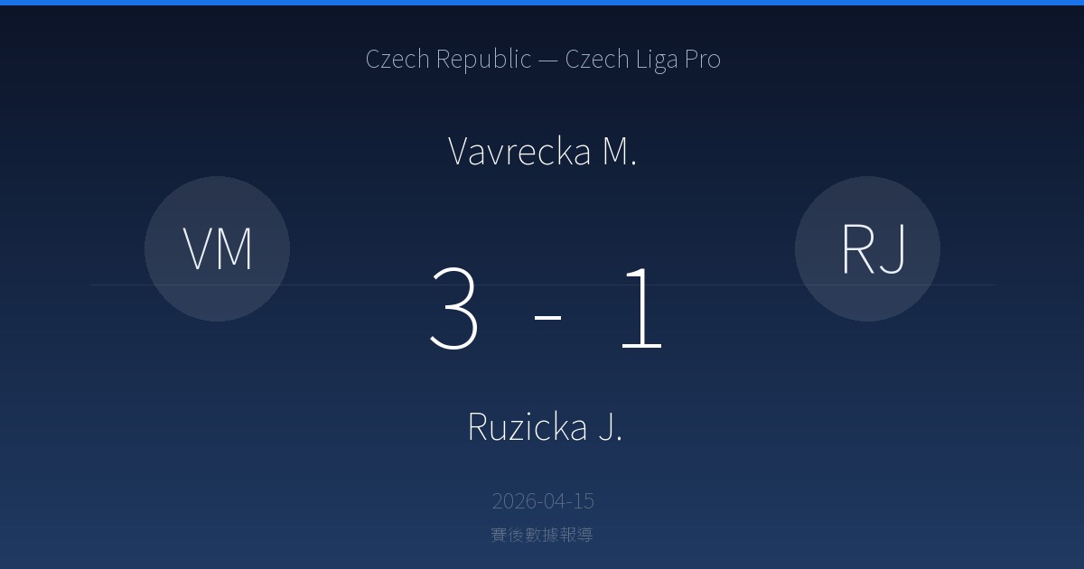 Vavrecka M. 5 勝 · 0 平 · 5 負 Ruzicka J. (近 10 場)
